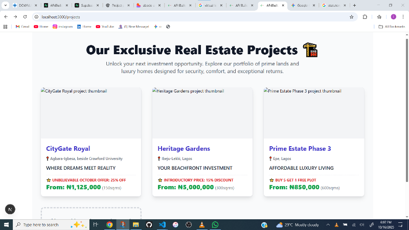 Each AFriBuilders project combines prime location, infrastructure, and investment upside designed for today's investors, families, and global partners.